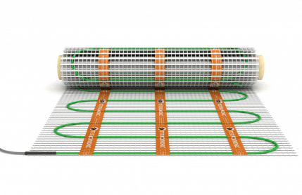 Теплый пол серии ТROPIX МНH 160-1,0 кв.м. представляет собой тонкий нагревательный мат, где на монтажной сетке из стекловолокна, закреплен двухжильный резистивный греющий кабель. Фиксация греющего кабеля с определенным шагом позволяет избежать соприкосновения (пересечения) греющих элементов и исключает возможность их перегрева. Высота нагревательного мата этой серии не превышает 4 миллиметров. Электрозащиту изделия и нейтрализацию электромагнитного излучения от греющих жил гарантирует двойное полимерное покрытие и сплошная экранирующая оболочка из алюминиевой фольги.