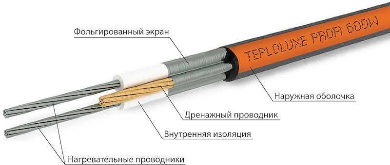 | удельная мощность кабеля | 17 Вт/м при 230 В |