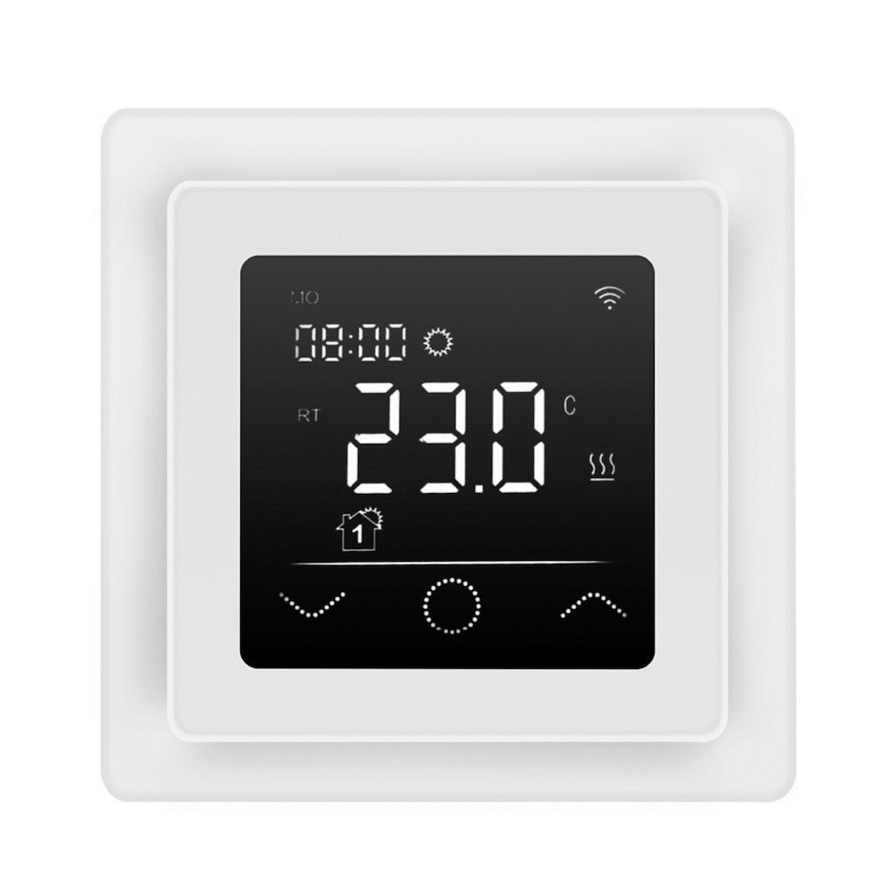 Сенсорный дисплей с подсветкой и интуитивно понятная структура меню делают использование этого термостата легким и приятным. Просто касайтесь дисплея, чтобы регулировать температуру и другие параметры. Дополнительные настройки позволяют вам настроить устройство согласно вашим предпочтениям, например, установить точность отображения или шаги ввода температуры.