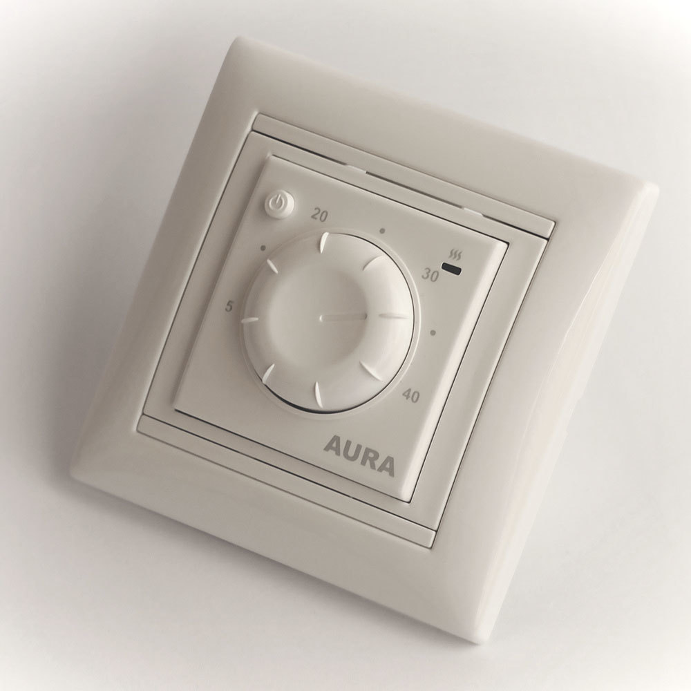 Терморегуляторы Aura LTC 030 относятся к одним из самых простых и надежных устройств механического типа. Включение и выключение производится отдельной кнопкой на лицевой стороне, а управление нагревом осуществляется с помощью кругового переключателя путем вращения по часовой стрелке. Он имеет несколько степеней регулировки, которые обозначаются температурными значениями от 5 до 40 градусов по Цельсию, с шагом в 5 градусов. Управление температурным режимом осуществляется по показателям внешнего датчика входящего в комплект поставки, устанавливаемого в плиточный клей или стяжку пола. Корпус термостата выполнен с защитой от влаги и пыли соответствующей стандарту IP20. Гарантия предоставляемая производителем составляет 2 года.