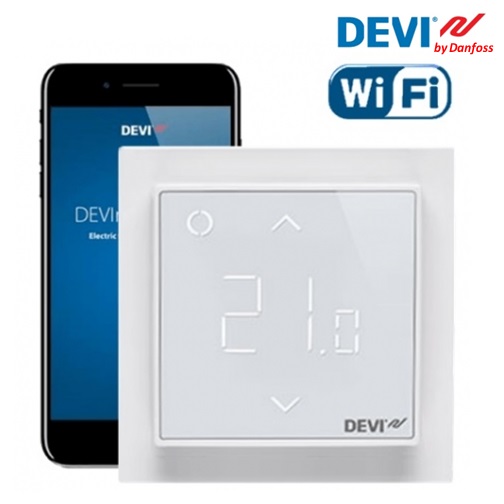 Терморегулятор DEVIreg Smart polar white ( артикул 140F1140 ) относится к интеллектуальным цифровым устройствам с расширенными возможностями управления. Наряду с управлением при помощи встроенного сенсорного экрана, им можно управлять с помощью специального приложения для iPhone или смартфонов на базе Android, а также через беспроводную сеть Wi-Fi или Интернет. Эта модель поддерживает подключение до 10-ти внешних устройств. При этом такой терморегулятор может находится в постоянном рабочем контакте одновременно с 2-мя устройствами.