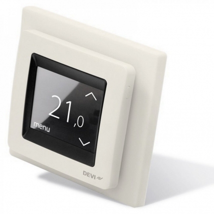 Терморегулятор DEVIreg Touch white ( артикул 140F1064 ) – это программируемый, электронный термостат, разработанный для контроля над отопительными системами. Основной блок управления – большой сенсорный экран с диагональю 2 дюйма. Ультрасовременный дизайн внешнего блока отлично впишется в любой интерьер. Для стилизации и универсальности разработчики предусмотрели совместимость прибора с декоративными рамками самых известных брендов электрических розеток (более 50 брендов). Терморегулятор является полностью универсальным и может управлять работай теплого пола от любого производителя.