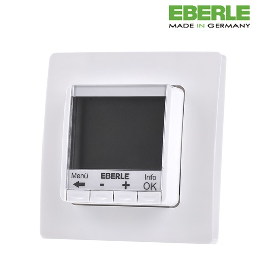 Терморегулятор EBERLE FIT 3R это электрическое устройство, с определенными программам для контроля за работой теплого пола в обогреваемом помещении. Терморегулятор EBERLE FIT 3R имеет стандартные размеры для монтажа во встраиваемую коробку. На лицевой части терморегулятора расположены ЖК дисплей, который отражает работу устройства и кнопки управления.