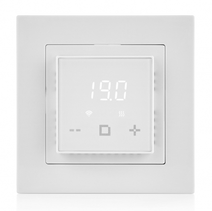 Ergert Floor Control 340 Wi-Fi white это современный программируемый терморегулятор модульного типа, оснащенный большим сенсорным экраном и модулем Wi-Fi. Ergert Floor. Он состоит из трех модульных частей: сенсорного дисплея, декоративной рамки, и встраиваемого блока. Терморегулятор оснащен встроенным датчиком температуры воздуха и укомплектован выносным датчиком температуры пола. Поддерживает режимы: Ручной, Автоматический, Защиты от замерзания, Защиты от детей, Адаптации и др.