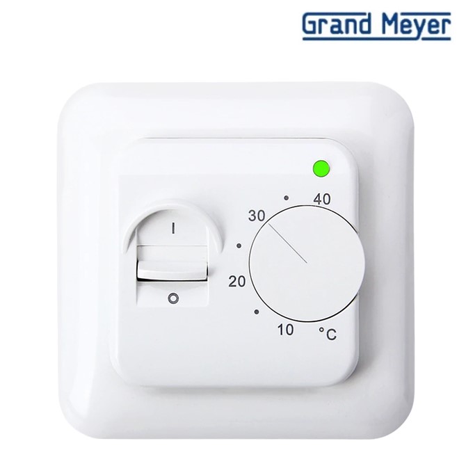 Терморегулятор Grand Meyer MST-1 это терморегулятор с механическим блоком управления, который предназначен для управления системой обогрева пола. Он имеет стандартные размеры для монтажа и устанавливается в стандартный подрозетник. На лицевой части терморегулятора имеется тумблер включения/отключения, колесо переключения температуры и светодиодный индикатор, отражающий работу системы обогрева. В комплект терморегулятора входит датчик температуры пола на проводе. Рабочий диапазон регулировки температуры от +5°C до +40°С. Максимальная нагрузка на устройство 16 А.