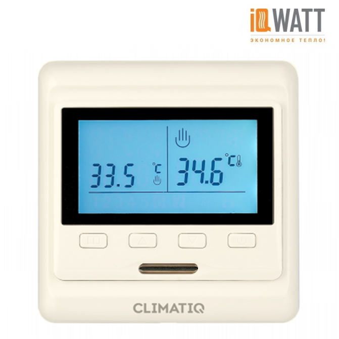 Терморегулятор CLIMATIQ РT ivory адаптирован для управления электрическими системами обогрева "Теплый пол" на основе нагревательных матов, секций греющего кабеля или инфракрасной пленки от любого производителя. Благодаря широким возможностям программирования и наличию встроенного датчика температуры воздуха терморегулятор CLIMATIQ РT ivory осуществляет более точное управление системой обогрева и обеспечит значительную до 70% экономию электроэнергии, а также долговременную эксплуатацию теплого пола. Такой терморегулятор безопасен, надежен и прост в эксплуатации. Каждая модель проходит сложный контроль качества, благодаря чему серия CLIMATIQ РT сертифицирована по европейским стандартам CE, EAC.