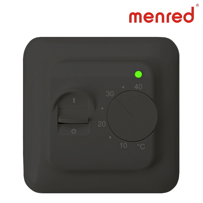 Терморегулятор Menred RTC 70.26 это механический терморегулятор, предназначен для управления системой подогрева пола. На лицевой части терморегулятора расположен тумблер включения, колесо механического переключения температуры и светодиодный индикатор, которые отражает работу системы обогрева. В комплект терморегулятора входит датчик температуры пола на проводе. Рабочий диапазон регулировки температуры от +5°C до +40°С. Максимальная нагрузка на устройство 16 А.