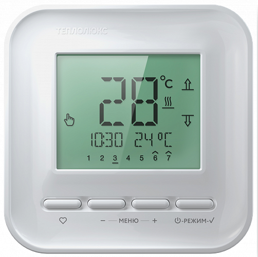 Терморегулятор Теплолюкс ТР 515 относится к цифровому типу устройств и используется для стабильной работы электрических систем напольного обогрева. Для удобства управления теплым полом на лицевой стороне терморегулятора размещен большой графический дисплей и кнопки управления. Поддержание температурного режима осуществляется с помощью внешнего терморезистивного датчика предназначенного для установки в напольную поверхность и встроенного в терморегулятор датчика температуры воздуха. Данная модель устройства поддерживает работу электрических систем обогрева в режиме антизамерзание, постоянное поддержание установленной температуры и любимый режим, а также обладает функциями блокировки кнопок, работы по одному из датчиков или их комбинации, таймера времени и дней недели.