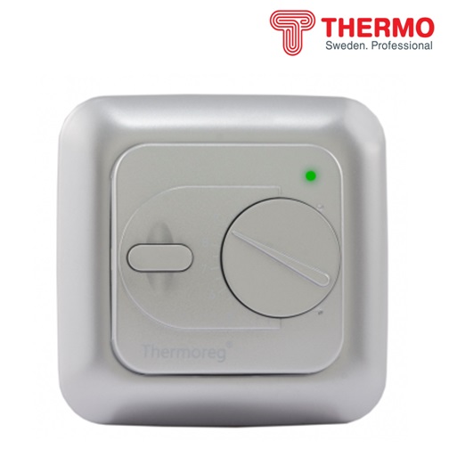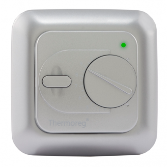 Терморегулятор Thermoreg TI-200 серебро это электрическое устройство, с механическим регулятором температур, которое предназначено для управления электрическими системами обогрева. Терморегулятор Thermoreg TI-200 имеет стандартные размеры для монтажа во встраиваемую коробку. На лицевой части терморегулятора расположены кнопка включения, колесо механического переключения температуры и светодиодный индикатор, которые отражает работу системы обогрева (красный индикатор - указаывает подачу питания на нагревательный кабель, зеленый - нет питания нагревательного кабеля, мигающий красный - выход из строя полового датчика.